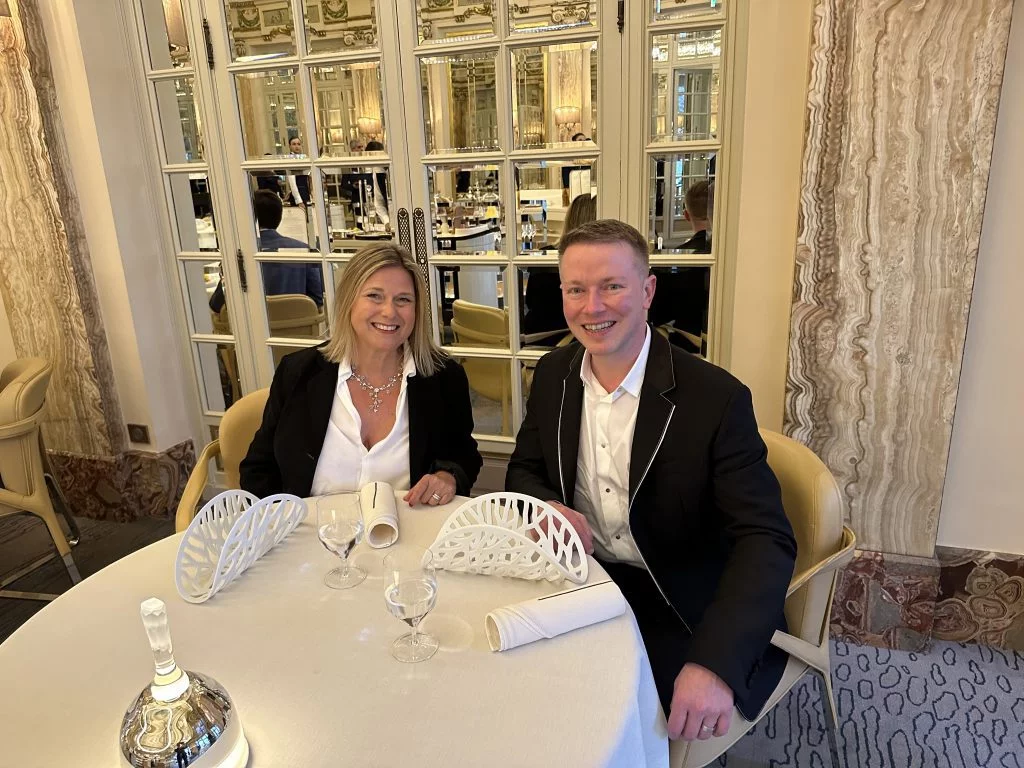 RKVST VP of Marketing Liz Harris and Bospar Principal Curtis Sparrer during a strategy session.