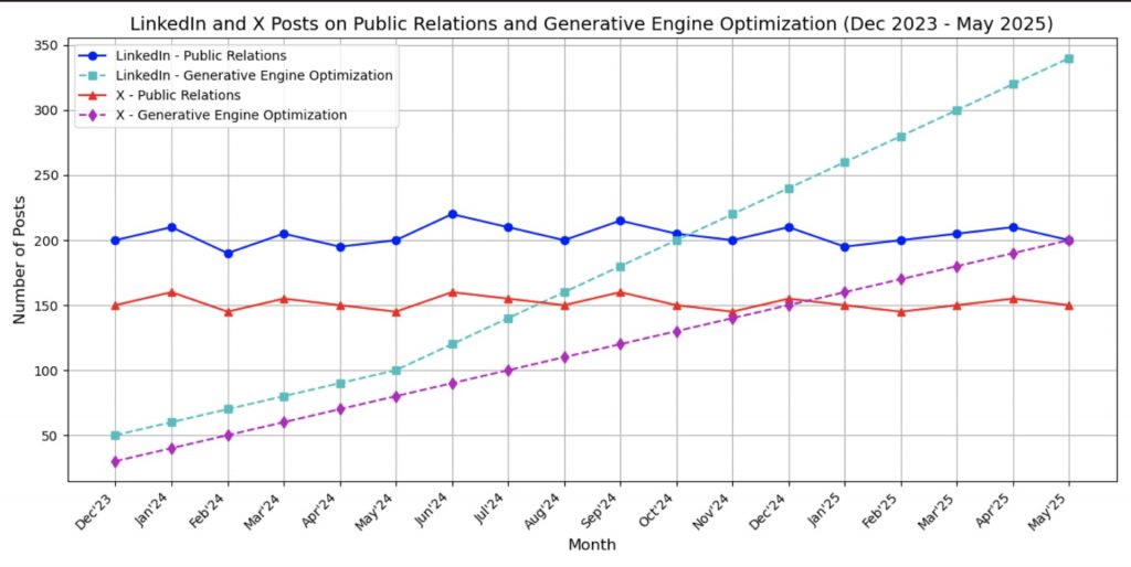 At that time, conversations around Generative Engine Optimization (GEO) had exploded. LinkedIn posts grew 10-20x from December 2023 to May 2025, but we were operating largely on theoretical frameworks.